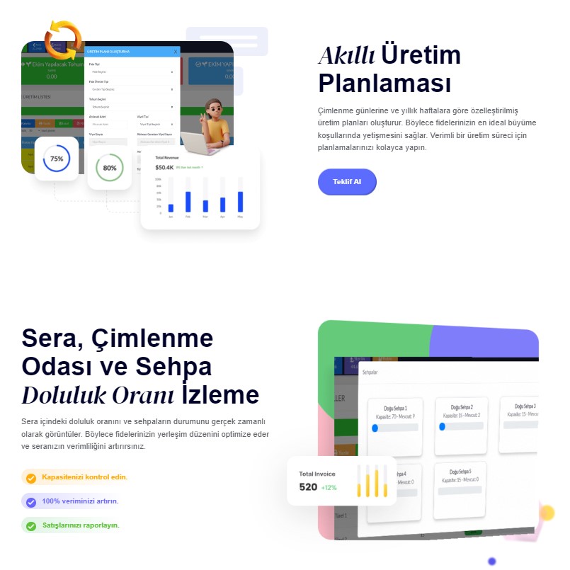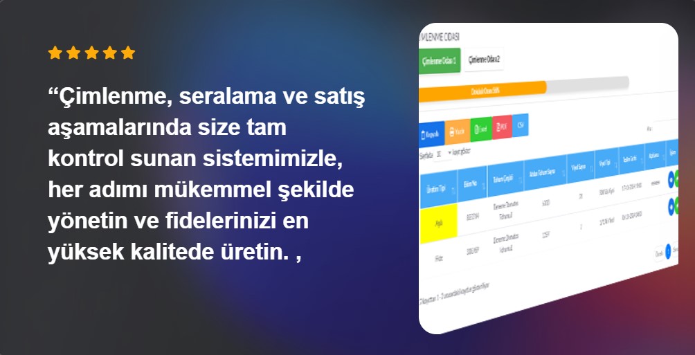“Çimlenme, seralama ve satış aşamalarında size tam kontrol sunan sistemimizle, her adımı mükemmel şekilde yönetin ve fidelerinizi en yüksek kalitede üretin.